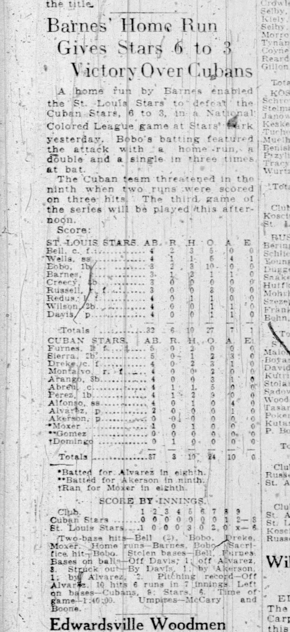 Sometimes you get quite attached to pet theories, only to see them fall apart when subjected to scrutiny. Unfortunately it turned out that Moxie Divis continued playing for the Cleveland Tellings throughout the month of June, even as the other Moxie was travelling through the Midwest with the Cuban Stars.
